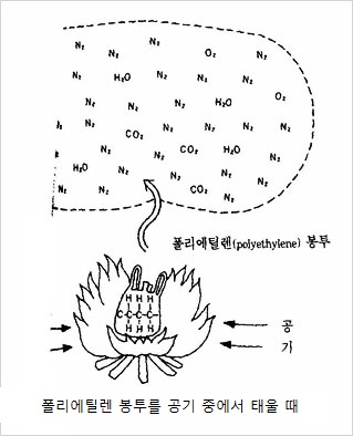 폴리에틸렌, 폴리프로필렌, 폴리스티렌은, 탄소와 수소로 되어 있기 때문에 공기가 있는 곳에서 온도르르 올려 가면 플라스틱이 분해되어 가연성 가스가 되고 이것이 산소와 반응하여 탄산 가스와 수증기가 되어, 불꽃과 높은 온도를 발하며 그 다음에는 외관상으로는 아무 것도 남지 않는다.